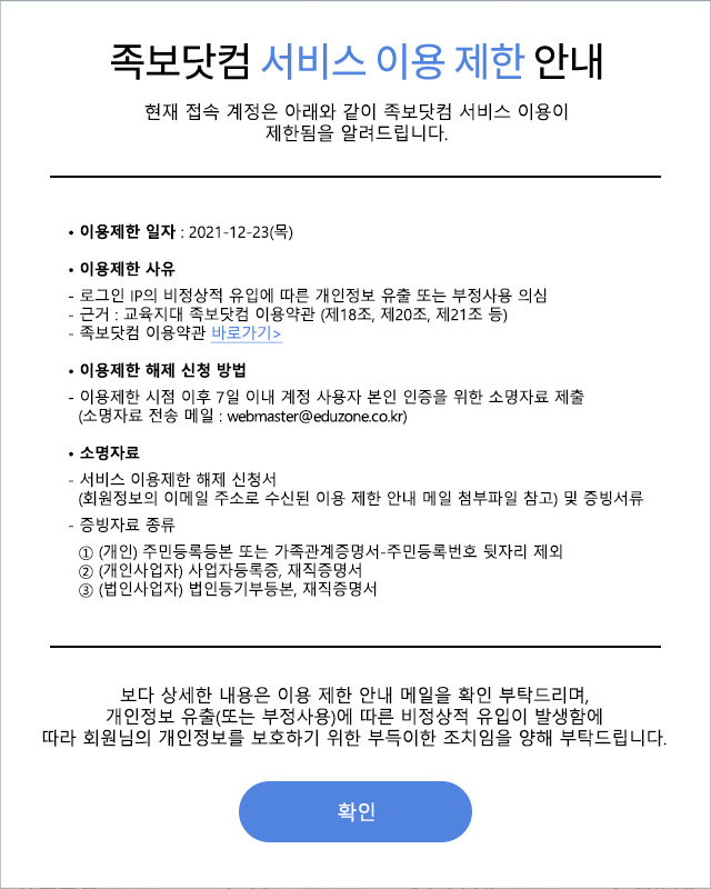 ÇØ´ç ÆË¾÷ÀÌ ³ëÃâµÈ ÀÌÈĺÎÅÍ º» °èÁ¤Àº Á·º¸´åÄÄ ¼­ºñ½º ÀÌ¿ëÀÌ ºÒ°¡ÇÕ´Ï´Ù.